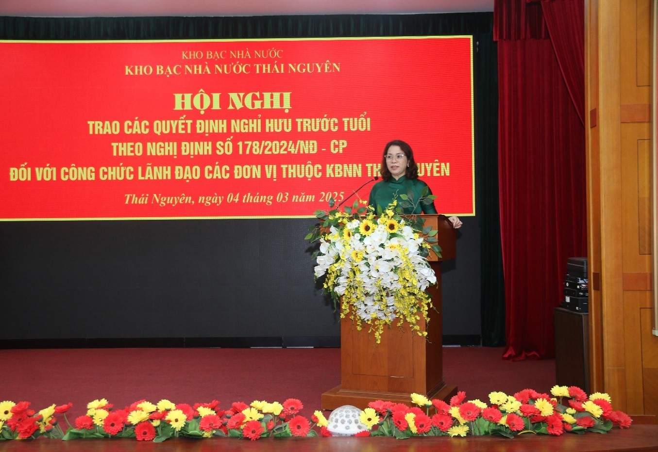 Hội nghị công bố và trao quyết định nghỉ hưu trước tuổi theo Nghị định 178/NĐ-CP đối với công chức lãnh đạo các đơn vị thuộc và trực thuộc Kho bạc Nhà nước Thái Nguyên