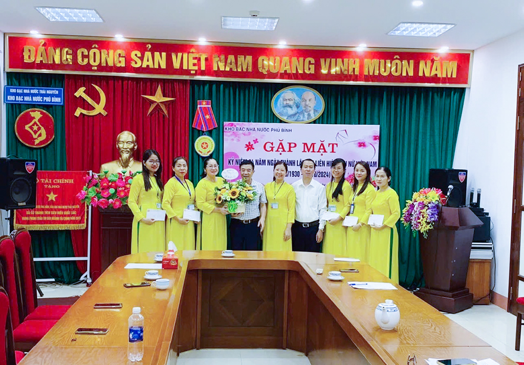 Hướng tới kỷ niệm 94 năm ngày thành lập Hội Liên hiệp phụ nữ Việt Nam (20/10/1930 - 20/10/2024). Ngày 18/10/2024, toàn bộ 09/09 công đoàn bộ phận trực thuộc công đoàn Cơ sở KBNN Thái Nguyên đã đồng loạt tổ chức gặp mặt ôn lại truyền thống 94 năm ngày thành lập Hội Liên hiệp phụ nữ Việt Nam, 100% nữ đoàn viên mặc áo dài để lan tỏa vẻ đẹp truyền thống làm đẹp cơ quan xã hội. Qua đó, mỗi cá nhân thêm yêu quê hương đất nước, ra sức lao động, học tập xây dựng cơ quan đơn vị ngành ngày càng phát triển góp phần vào phát triển kinh tế - xã hội tại địa phương.